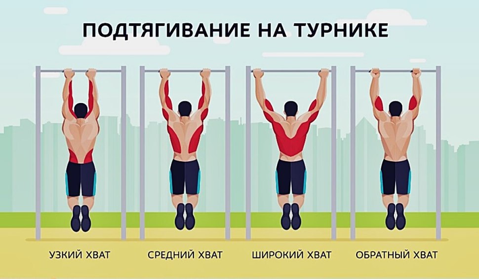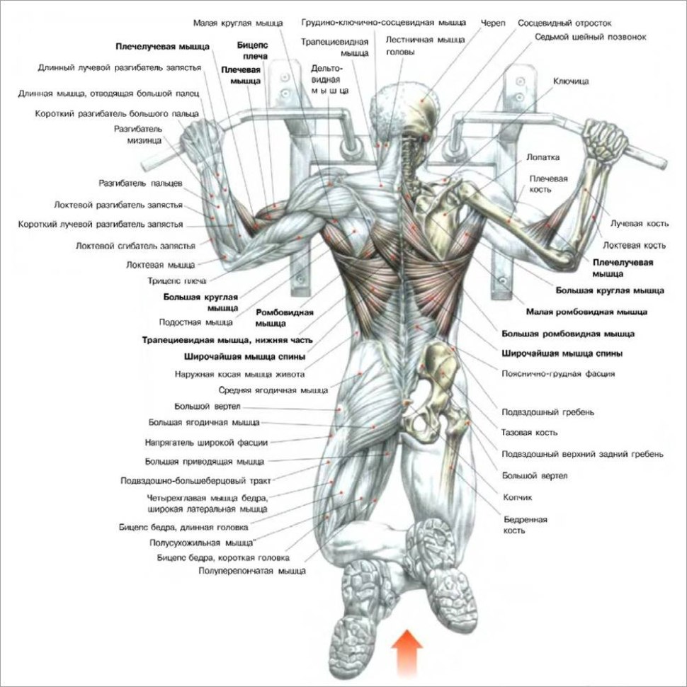 Подтягивания на турнике широким хватом какие мышцы работают (72 фото)