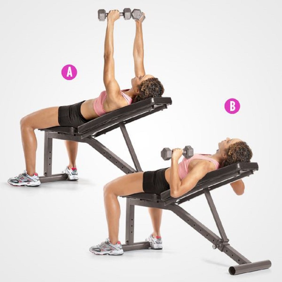 13. Пуловер с гантелей лежа для девушек